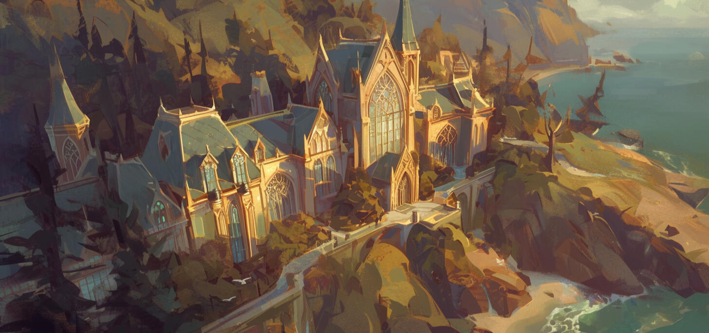 Perched on the rugged cliffs of Northhaven, Veilwood Academy overlooks a secluded beach and a vast expanse of sea, providing merfolk demi-humans with a unique and thriving habitat. Surrounded by dense woods and steep cliffs, the academy offers an isolated yet dynamic environment designed to facilitate the coexistence of its diverse student body—predators, prey, humans, and supernaturals.